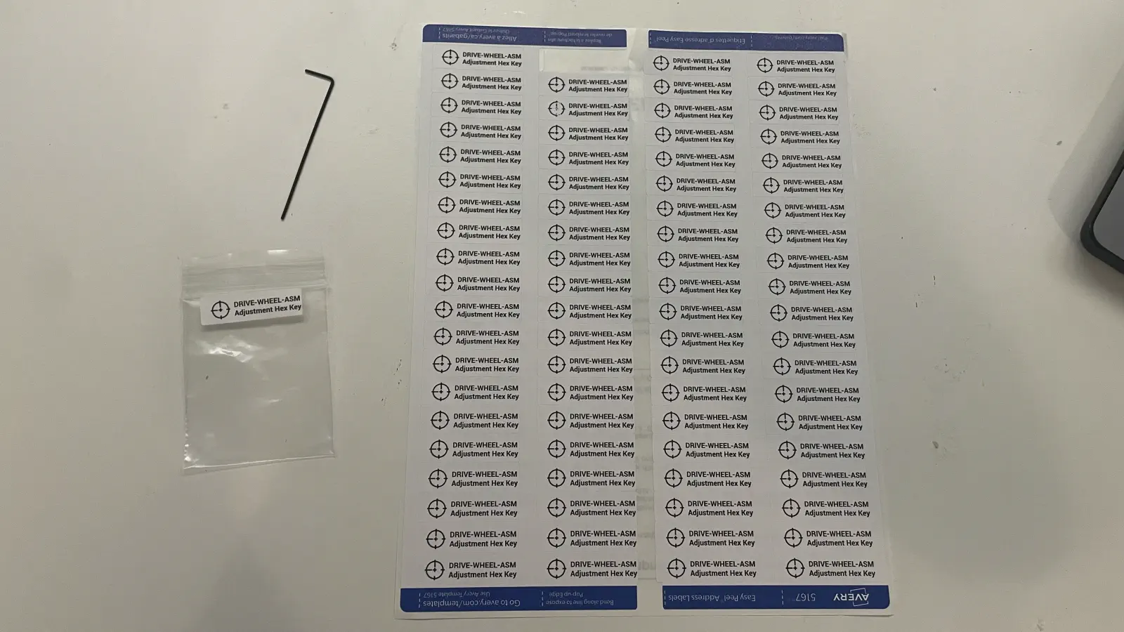 Adhere a "hex key bag label" onto a