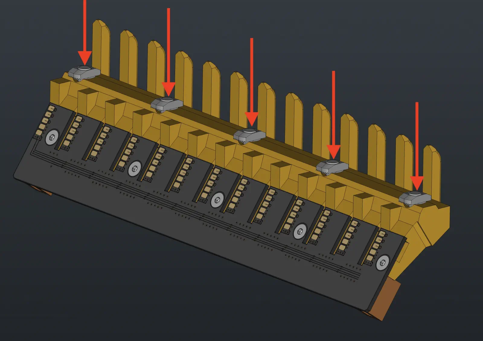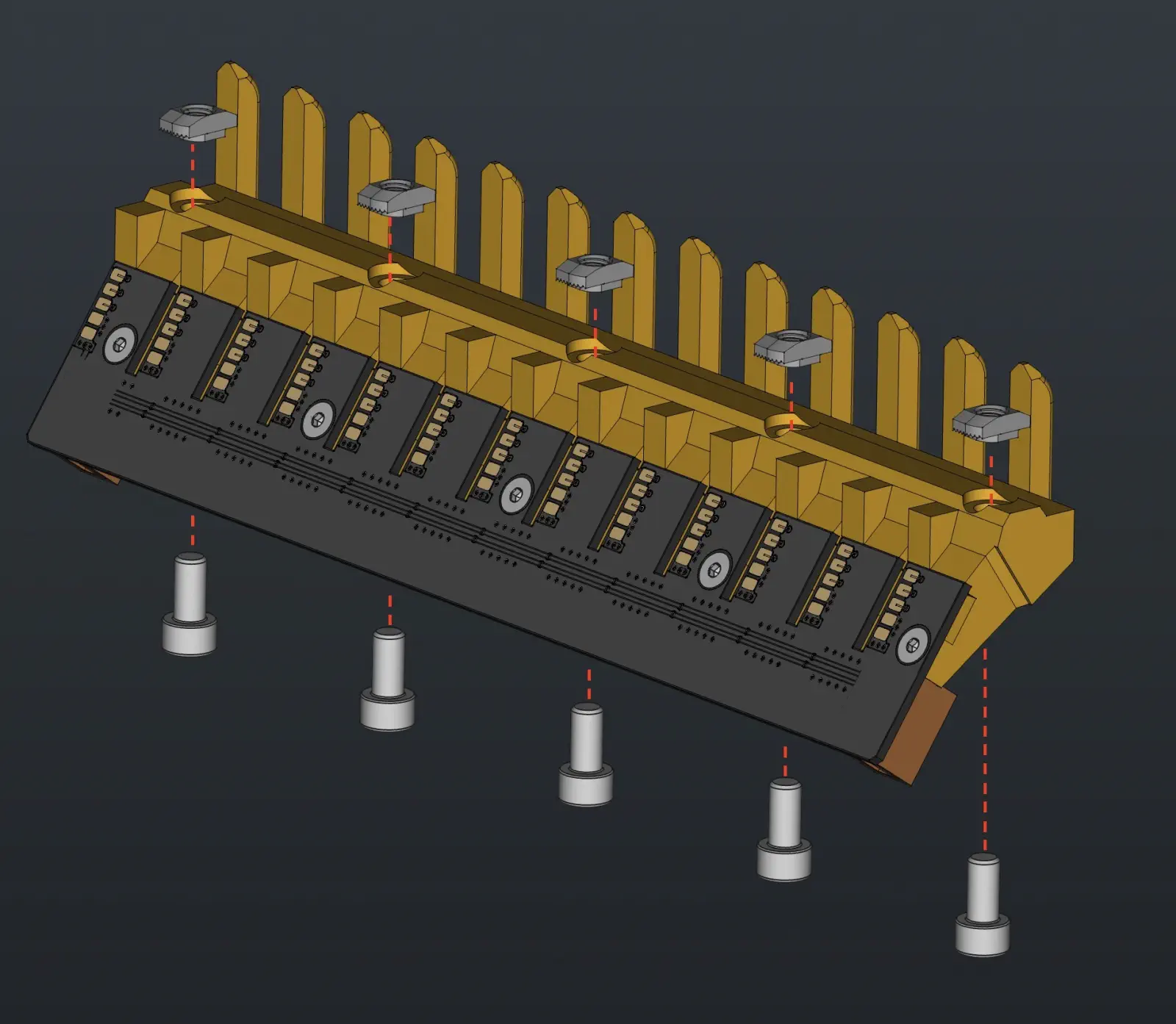 M5-t-slot-nutand 5xM5x10-boltinto each feeder blade for subsequent use in mounting onto a feeder rail