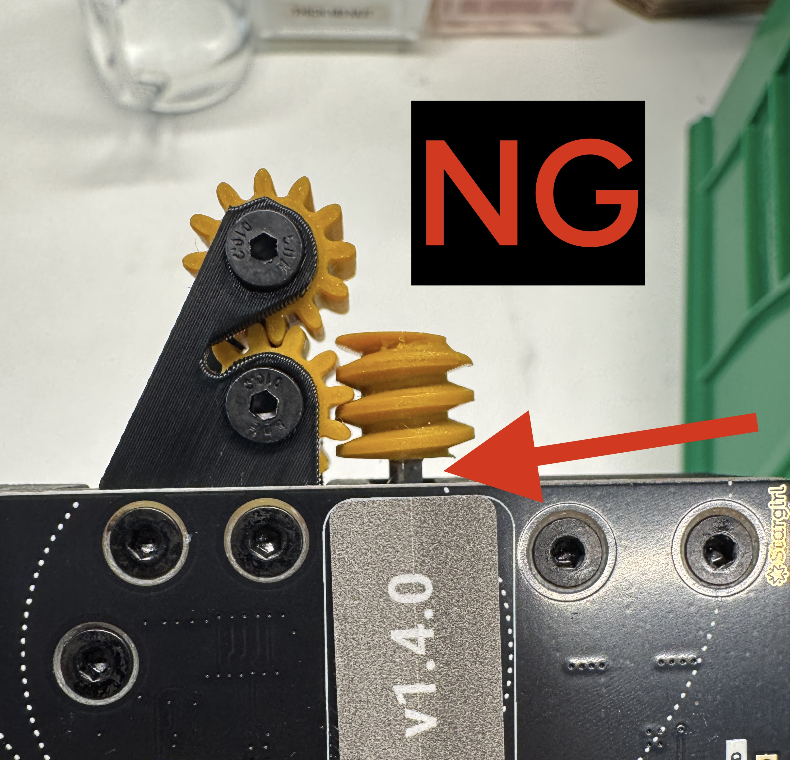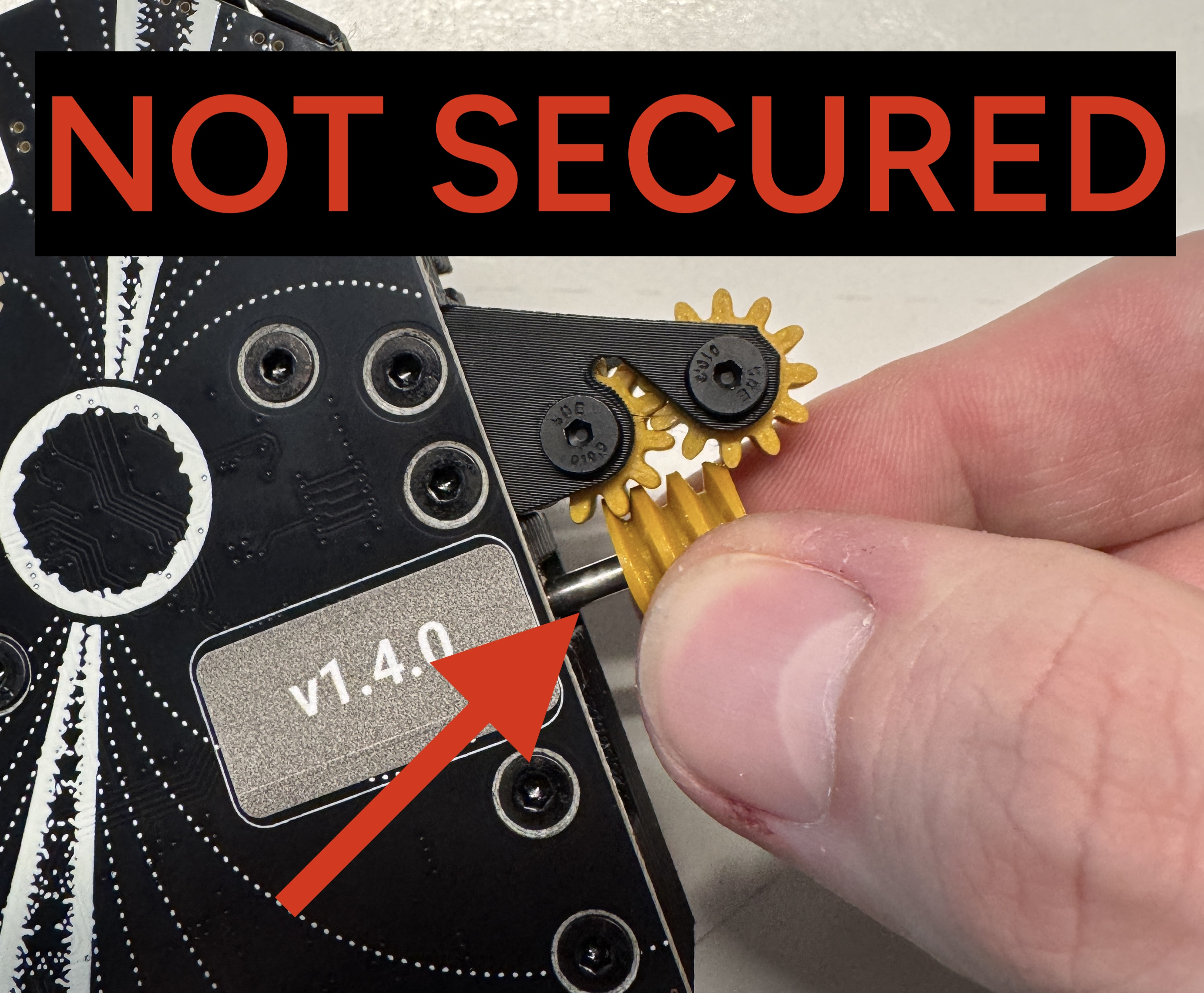 peel-worm-gearis glued on at the appropriate depthpeel-worm-gearis not able to slide off the peel motor shaft- Drive wheel is securely tightened onto drive shaft