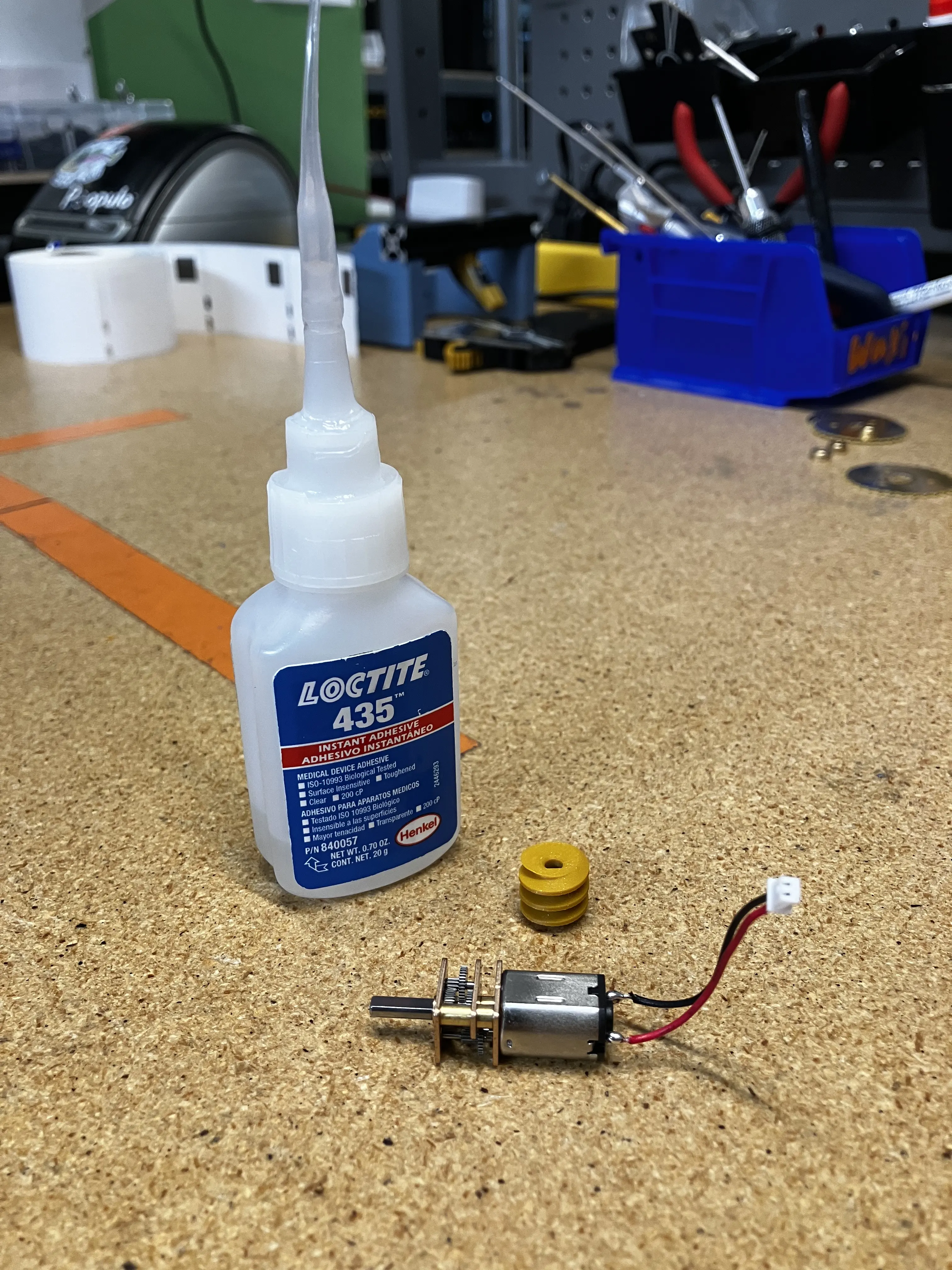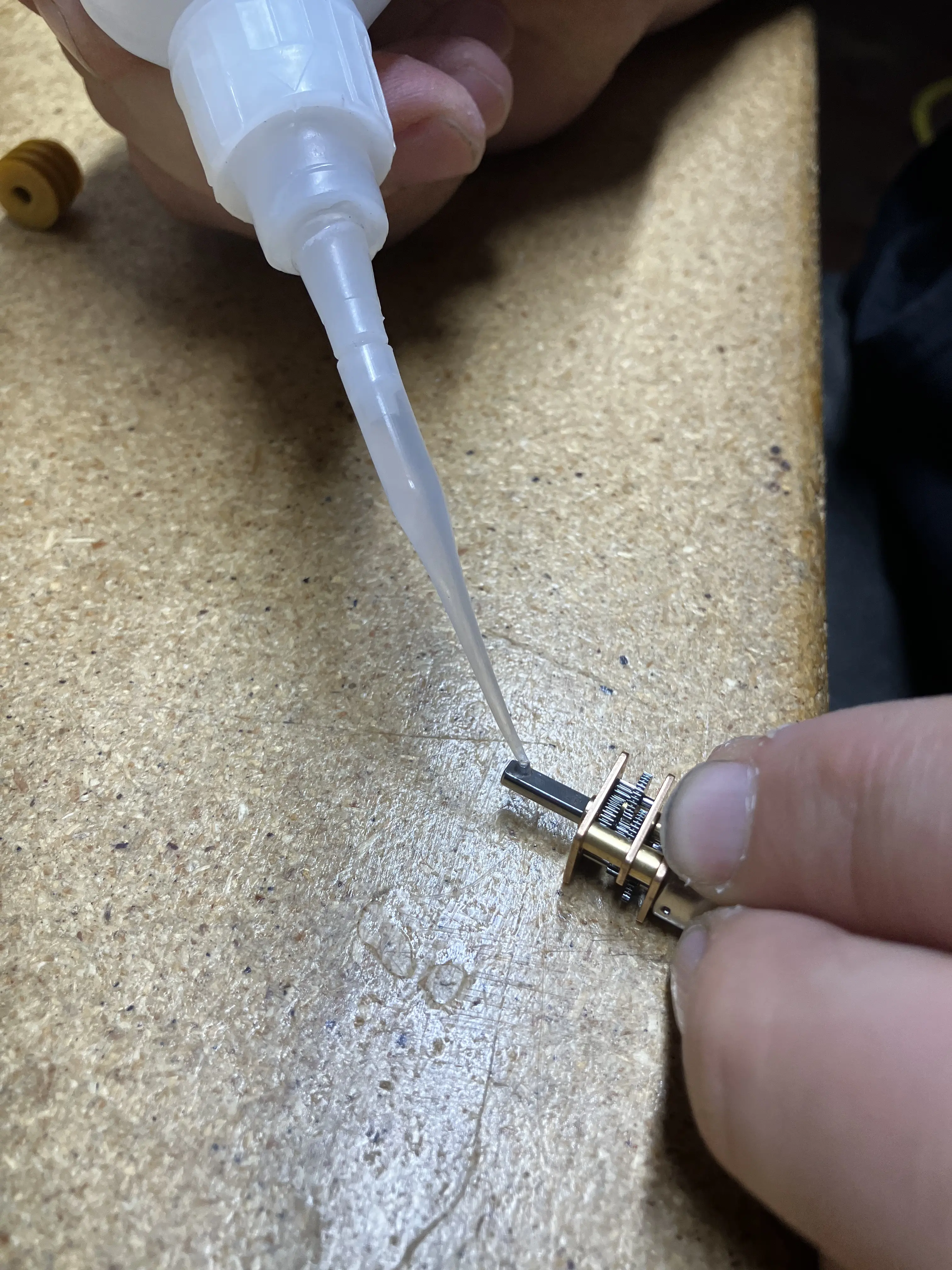 This section will guide the reader on how to properly glue the worm-gear onto the shaft of a peel-motor to create peel-motor-asm.