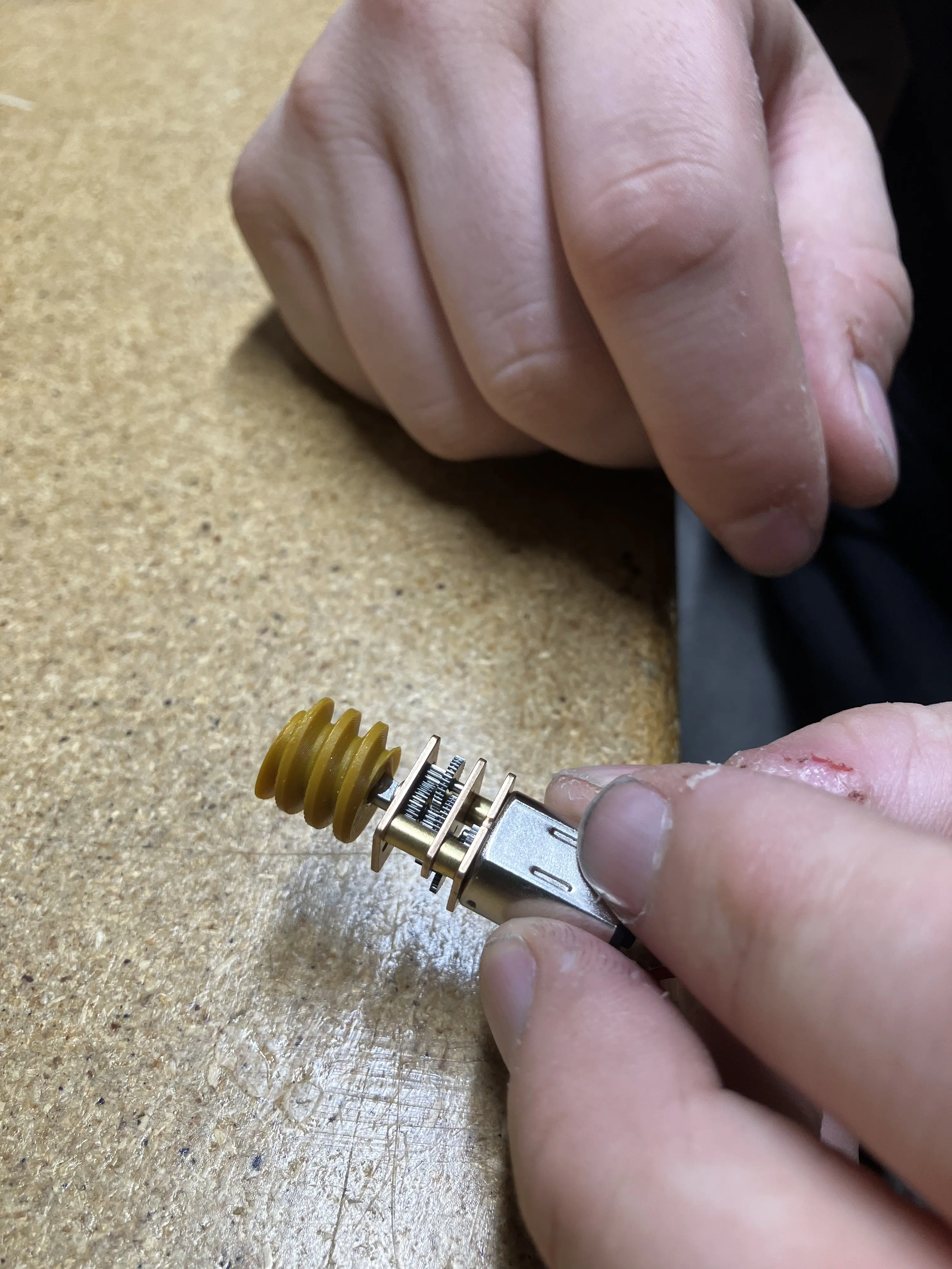 peel-motorshaft to hole ofworm-gearand firmly bring pieces together.