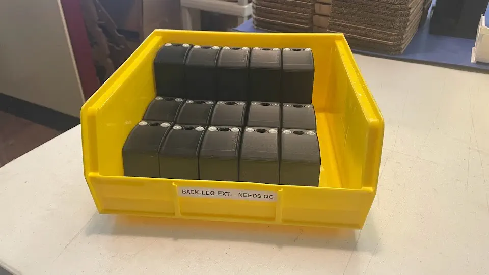 back-leg-extensioninto a yellow NEEDS QC bin while it awaits inspection