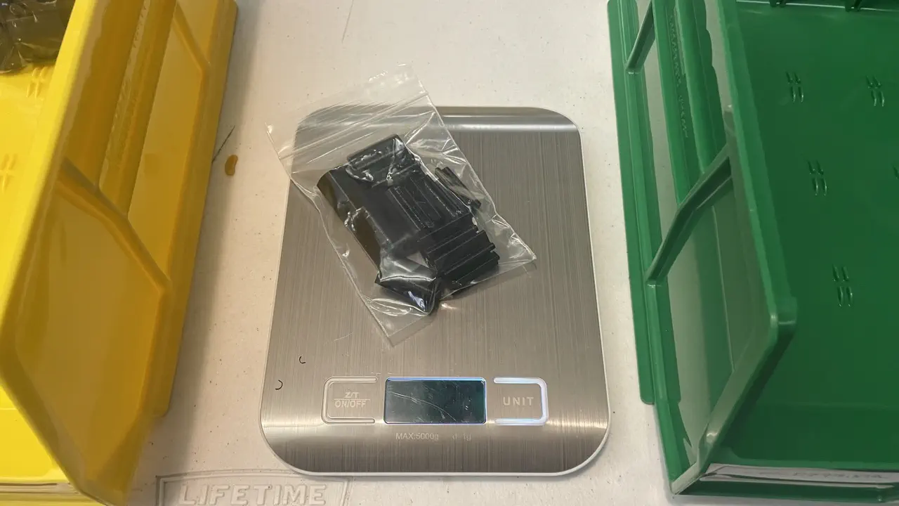 bagged-extrusion-cable-clipspieces that pass weight check into a green QC-Pass bin