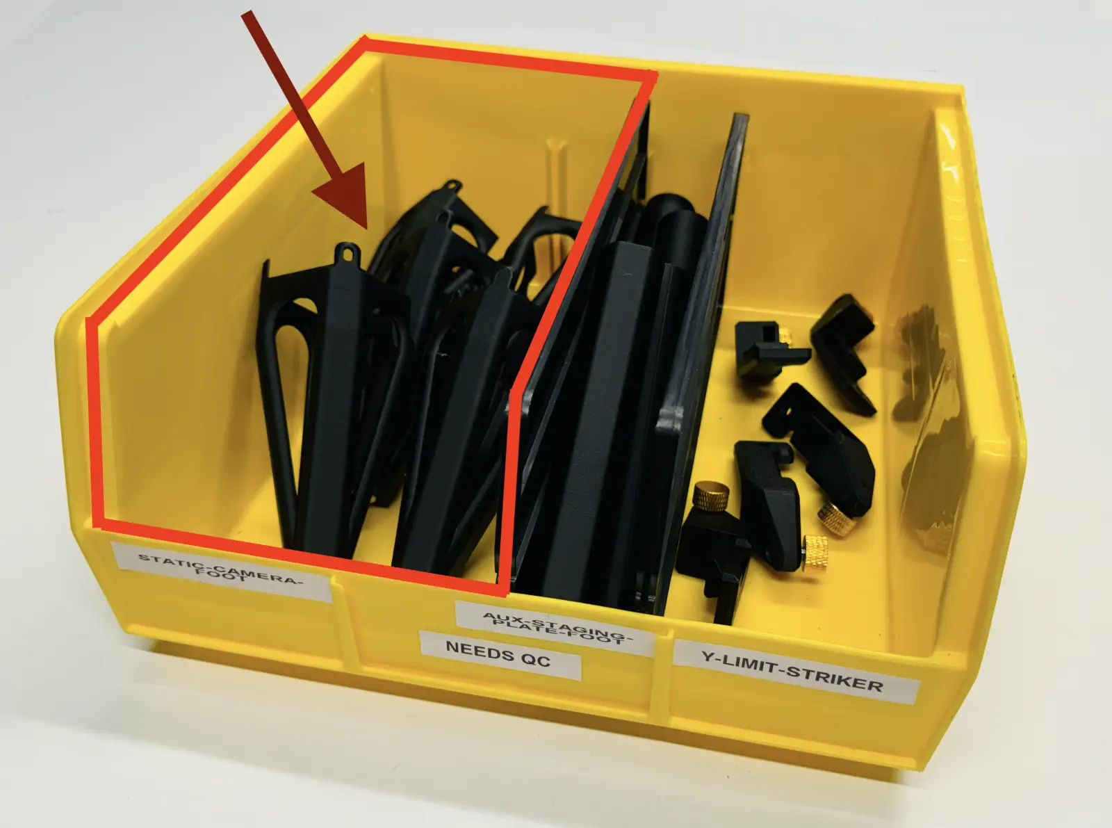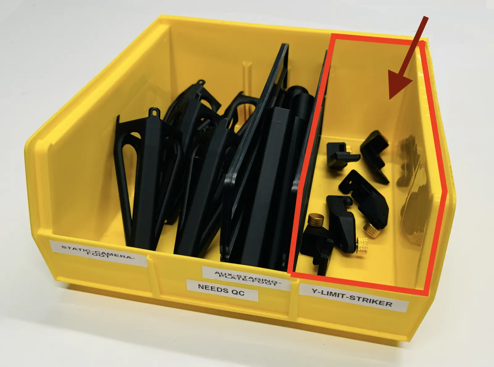 y-limit-strikerinto a yellow NEEDS QC bin while it awaits inspection