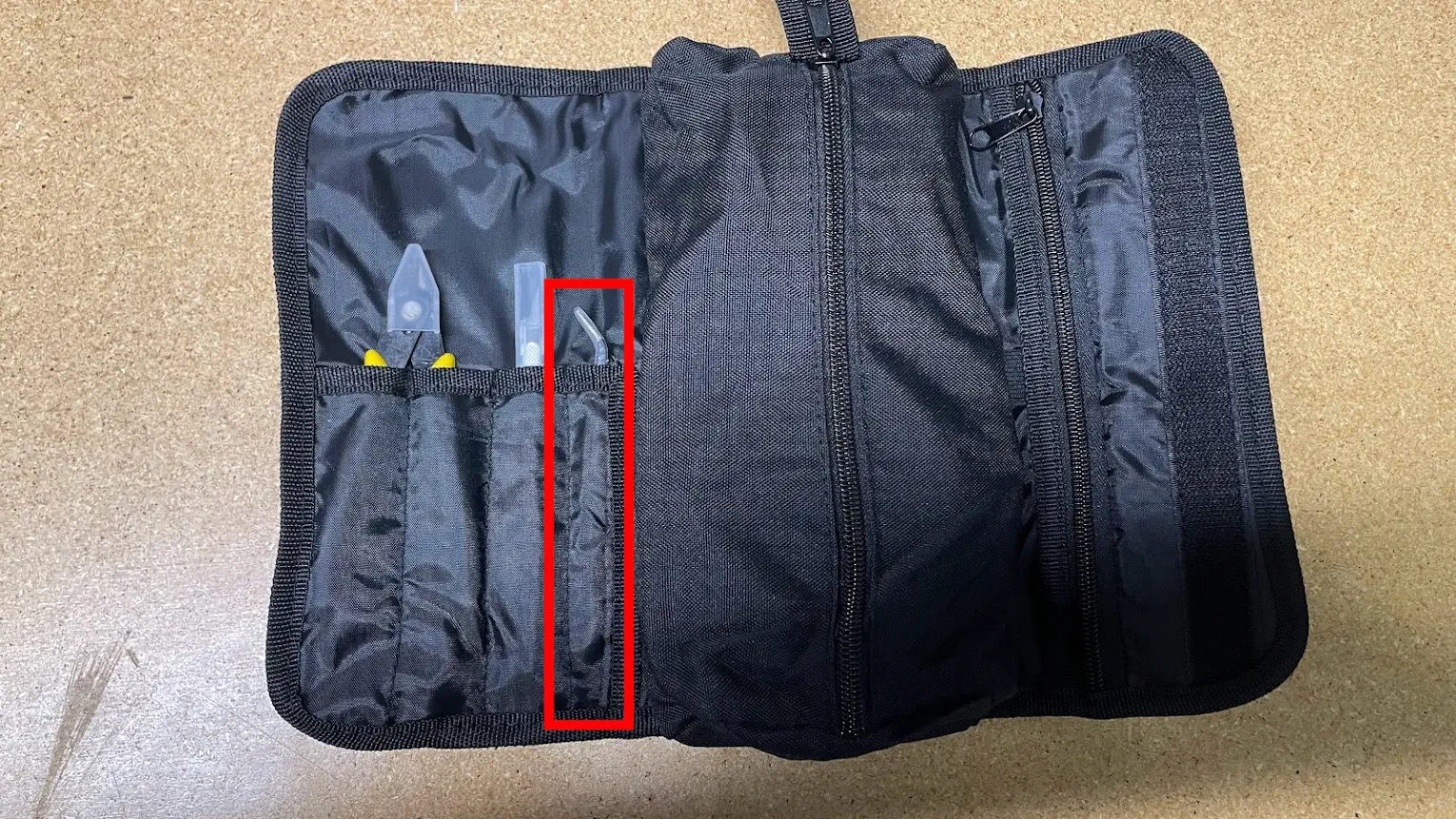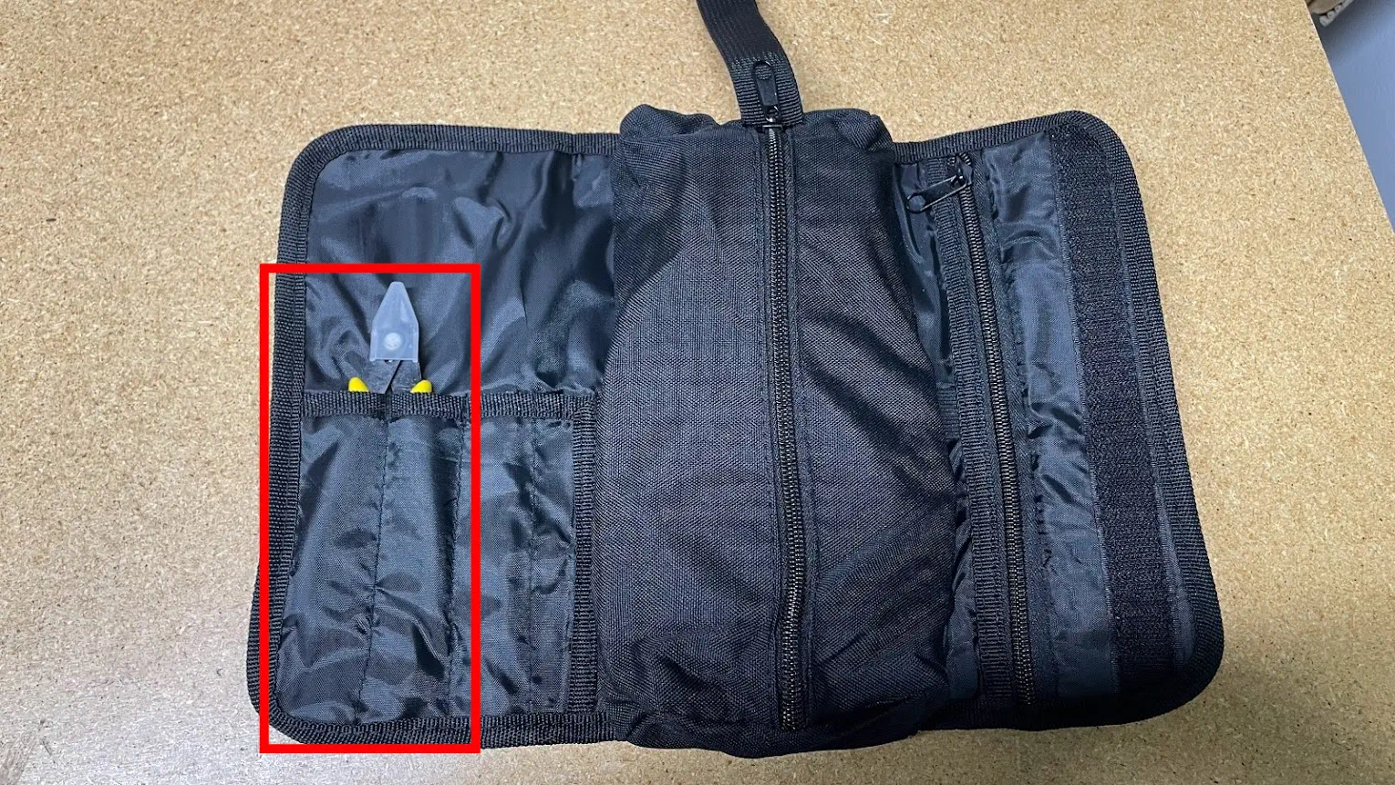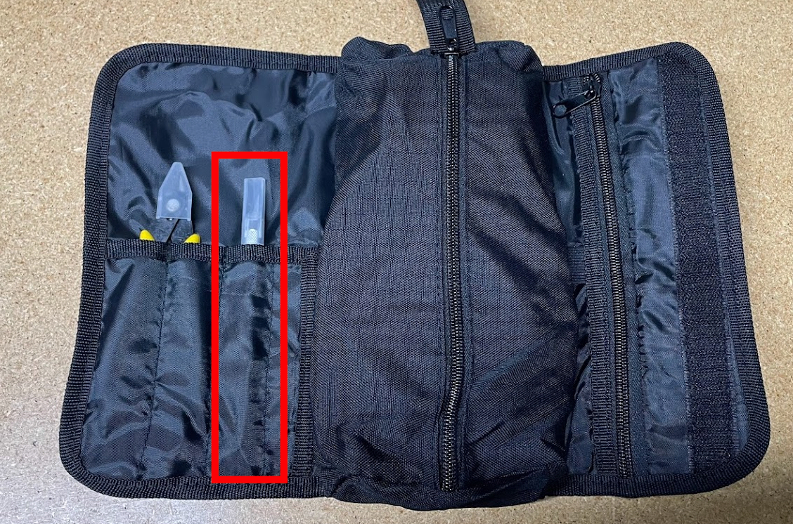 xacto-knifeinto the following pocket in thetool-kit-bag- Make sure the protective cap is on tightly and that the blade clamp is tight
