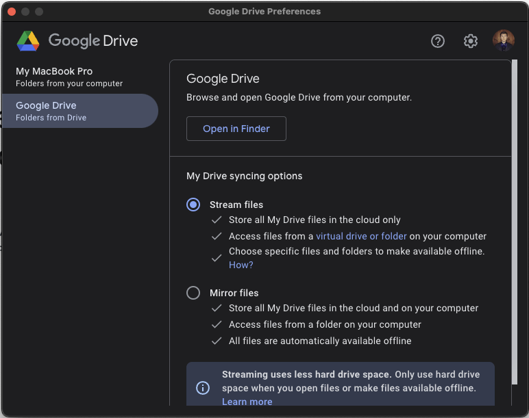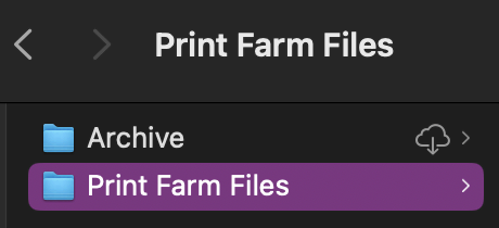 Shared Drives/OpuloEngineering/Manufacturing/In-House Production/3D Printingin Finder, and click on the little clowd/arrow icon next to it. This will keep this folder downloaded to your computer.