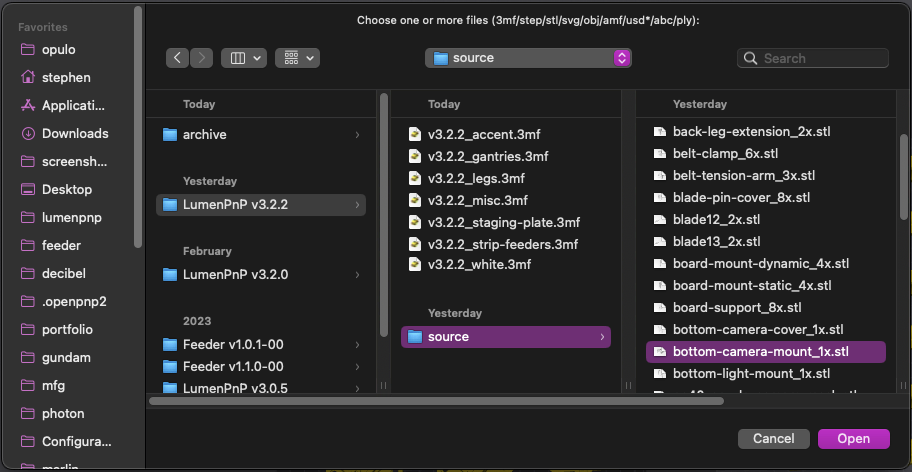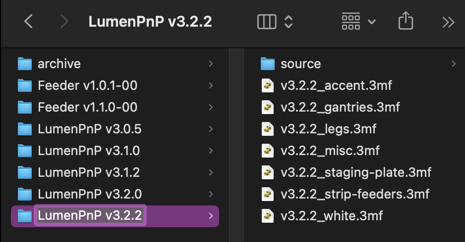 - Go to the latest release (LumenPnP)(Feeders) for the product you're updating.