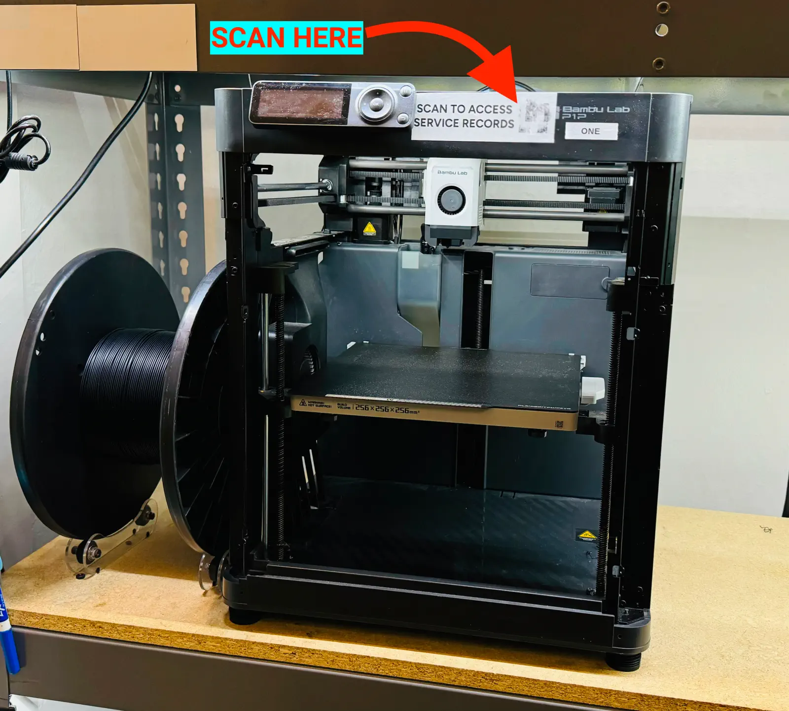 Any time a printer is being repaired, log the work completed to the appropriate Printer Service Records Google Sheet by scanning the QR code found on each printer.