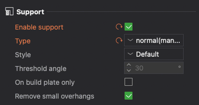 Once support is added, make sure support is enabled in the settings. Check the Enable support box and set Type to normal(manual).