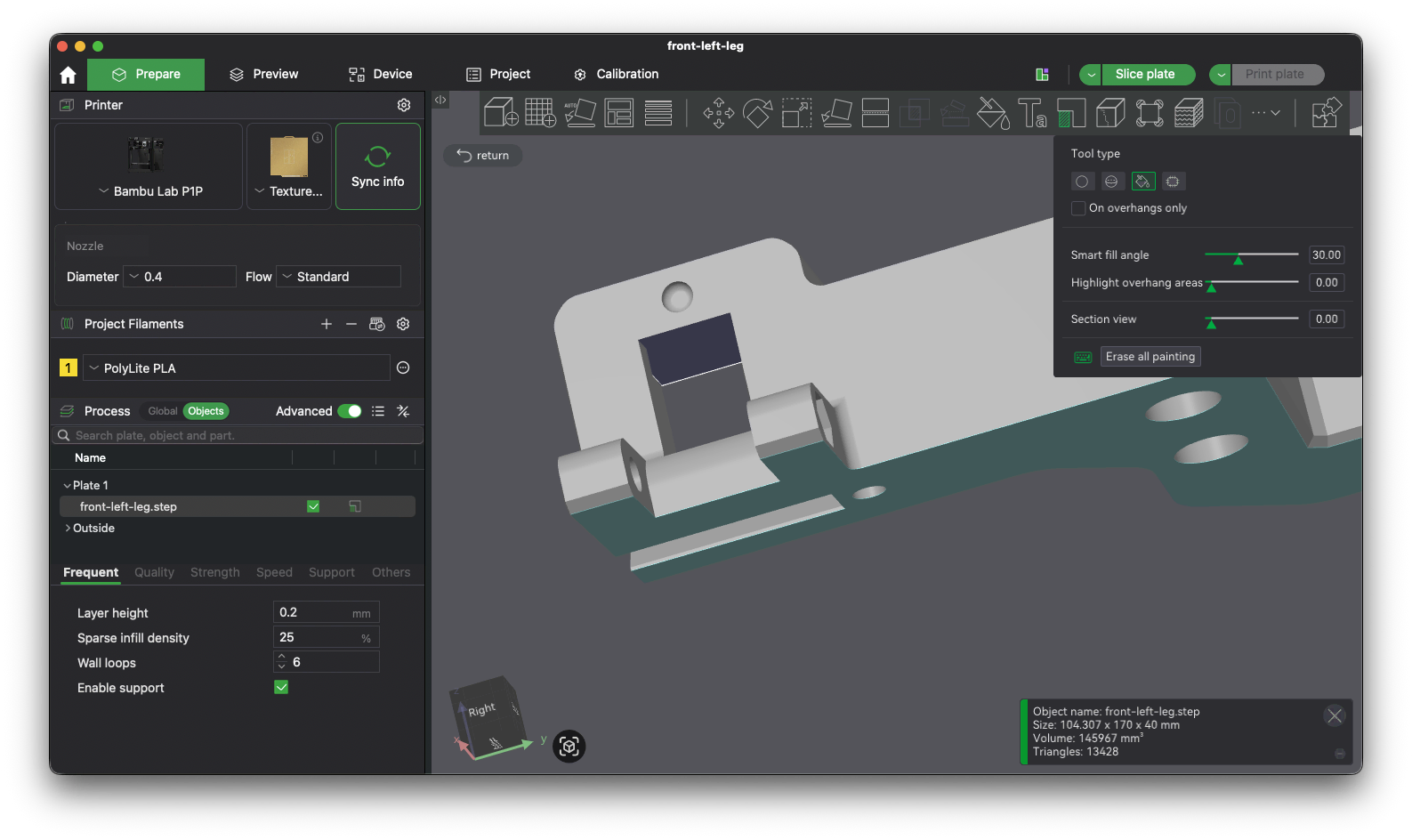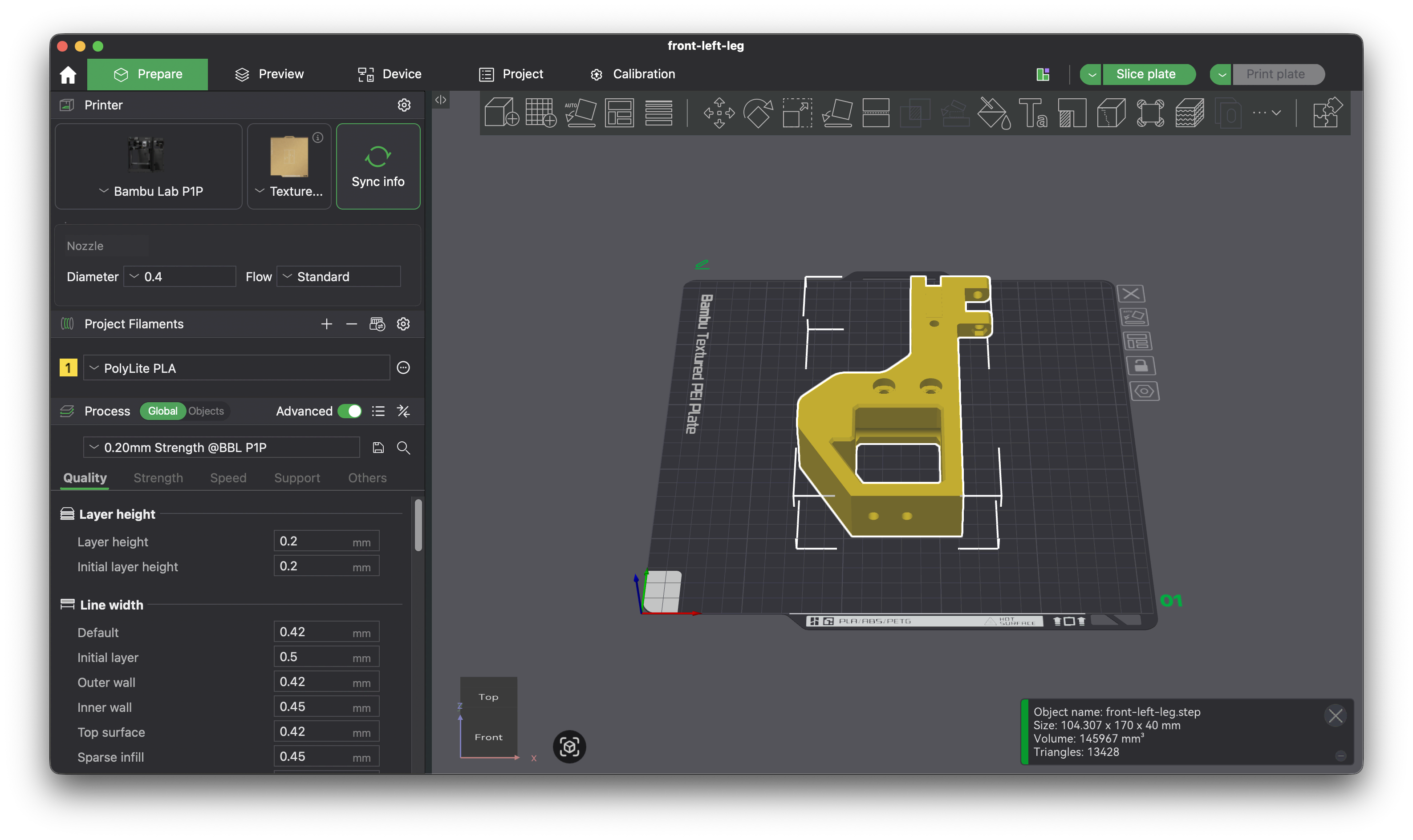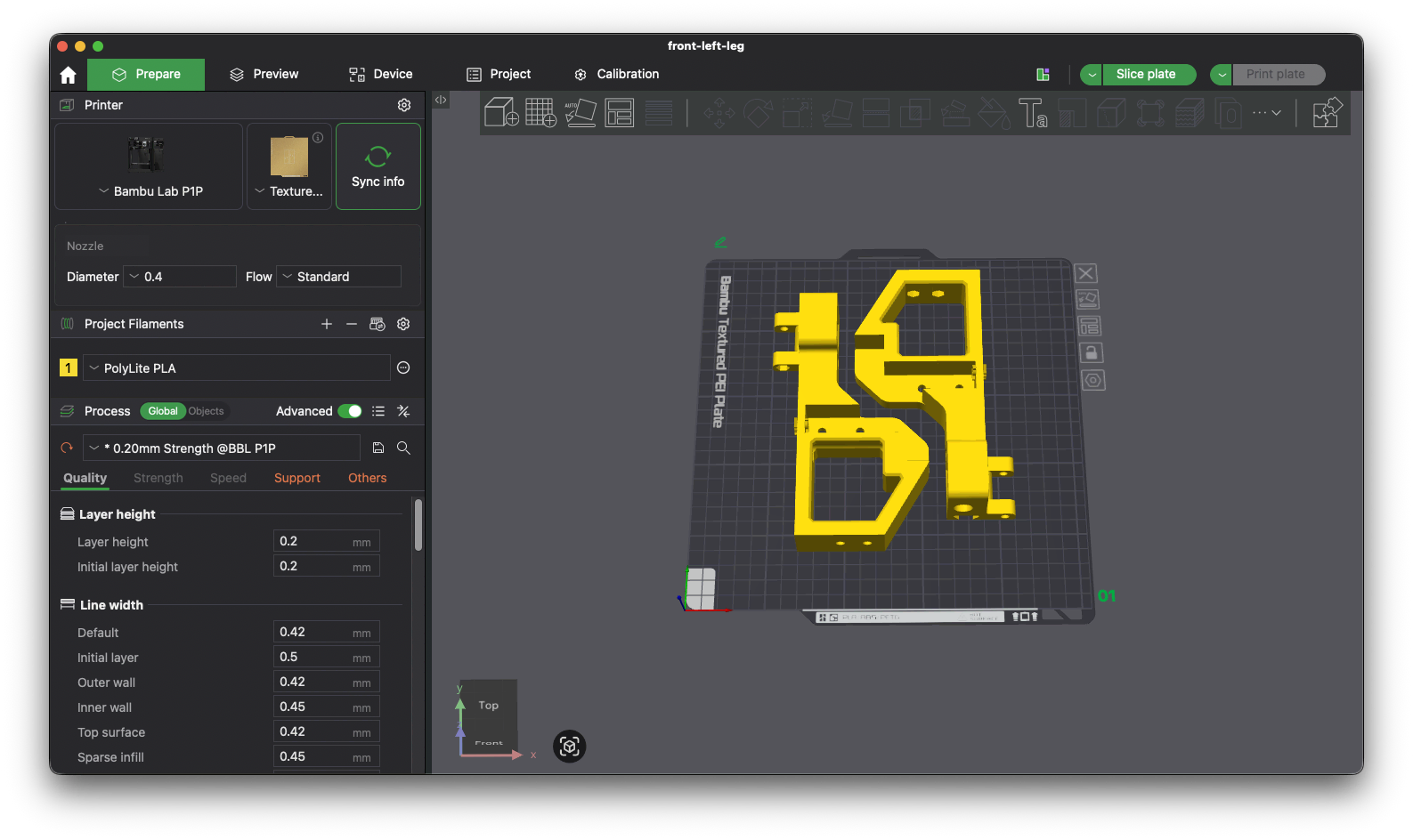 We will slice the print for the P1P printer first. With the correct printer selected, click Slice plate at the top right of the screen.