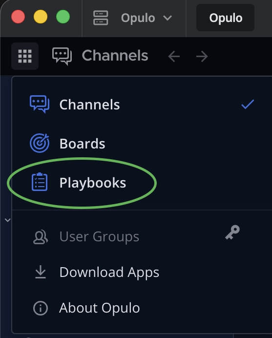 Switch from the default Channels page to Playbooks