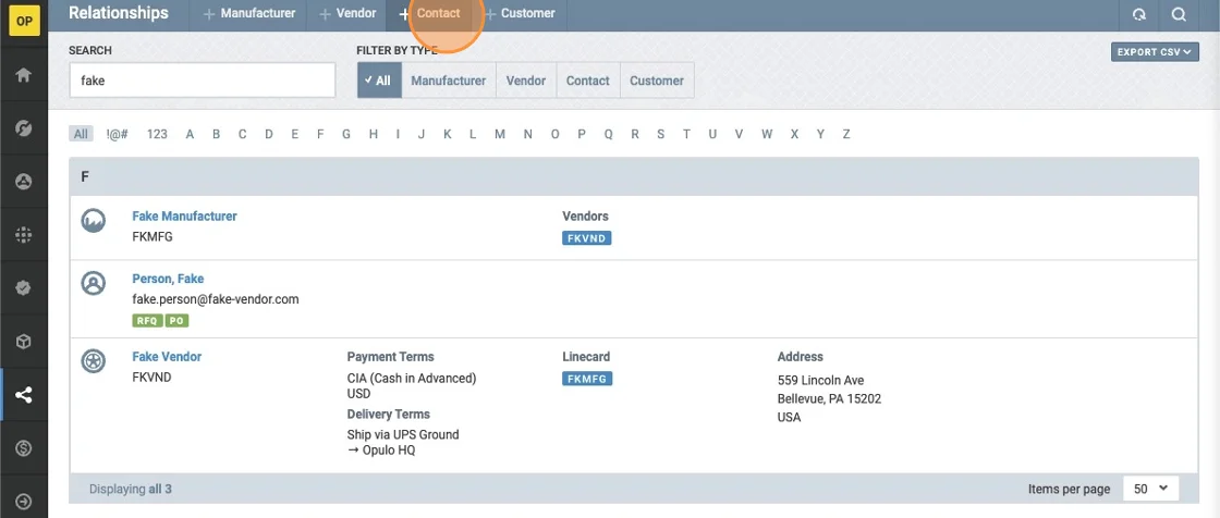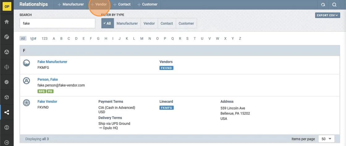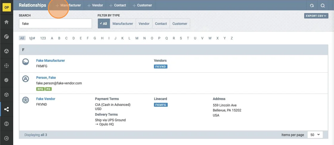 Creating and Associating Vendors, Manufacturers, and Contacts