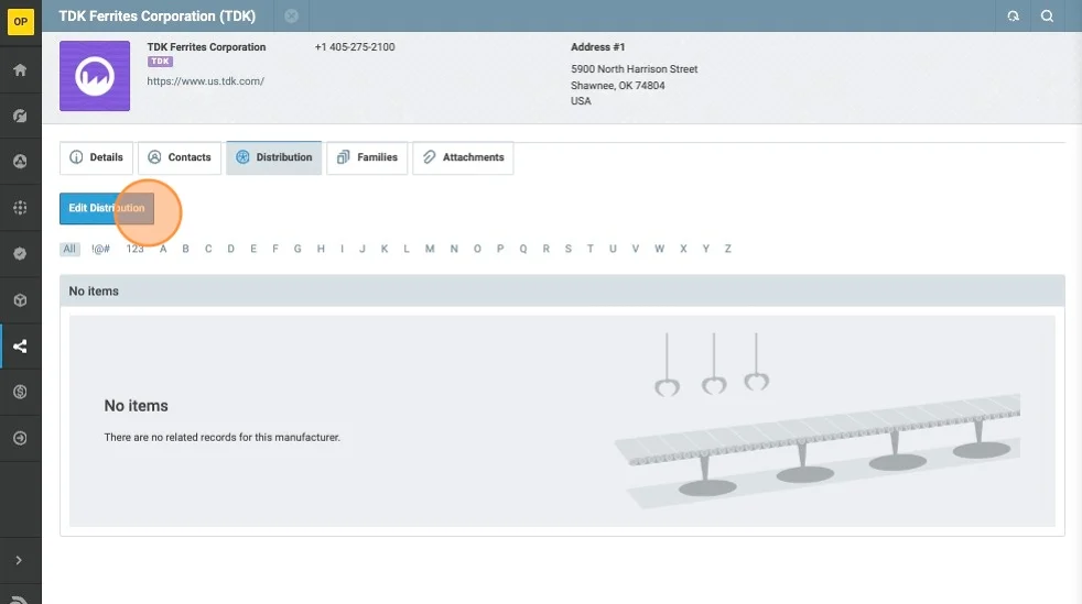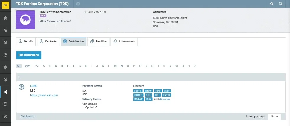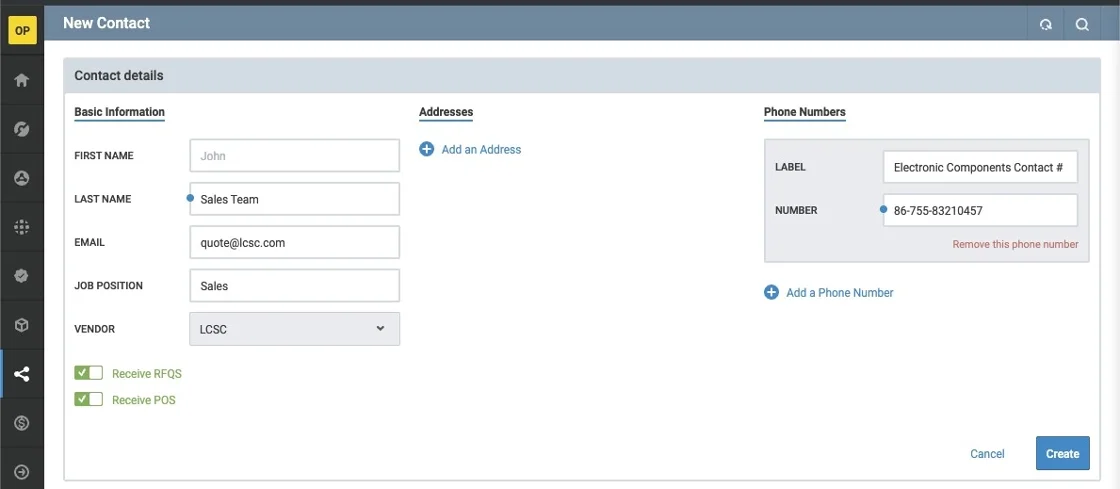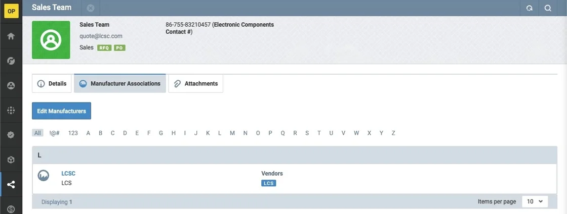 - Contact listings in Aligni contain the details required to contact the vendor/manufactuer for RFQ (request for quotes) and PO (purchase order) issuance