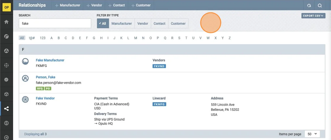 This SOP will also demonstrate how to properly associate these three types of entities to one another in order to properly conduct supply chain operations here at Opulo.