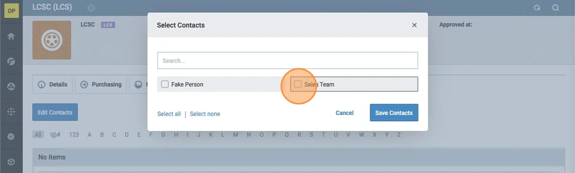 - Contacts are individuals or teams listed in Aligni that are associated with vendors and/or manufactuers