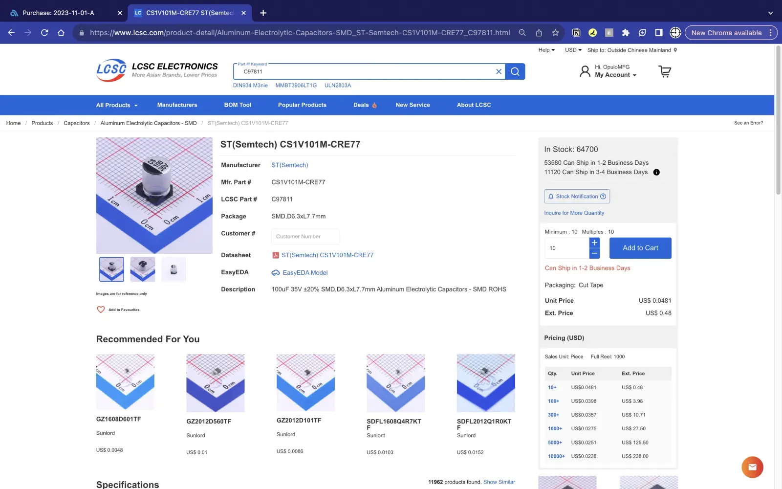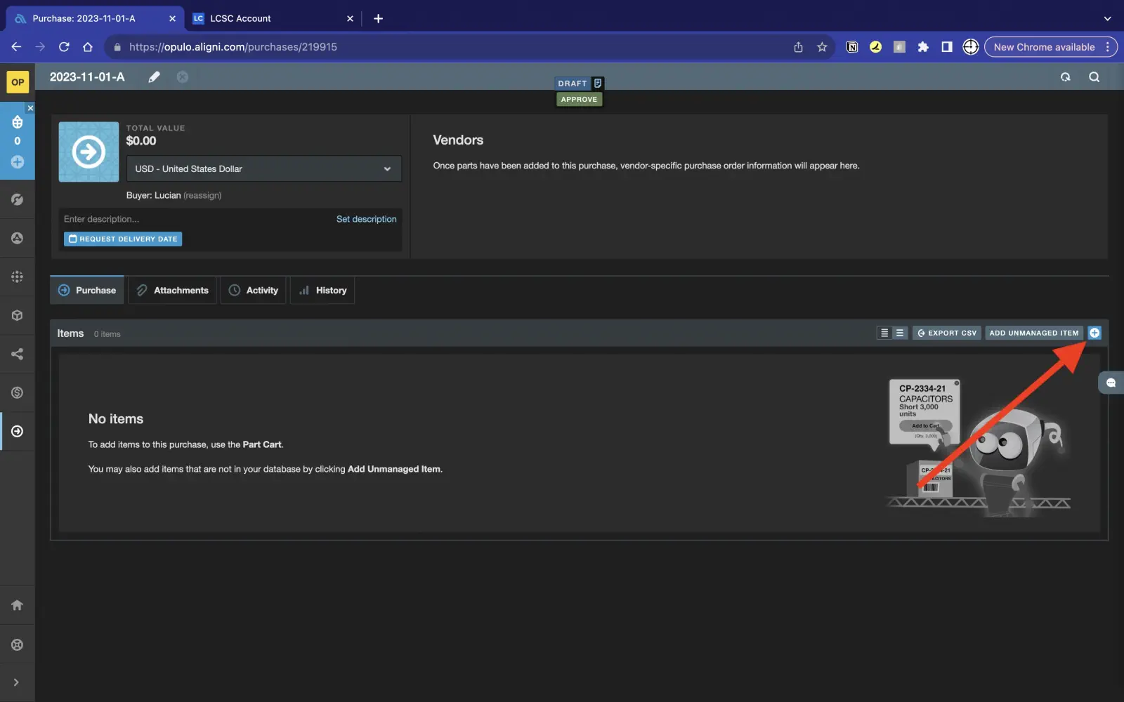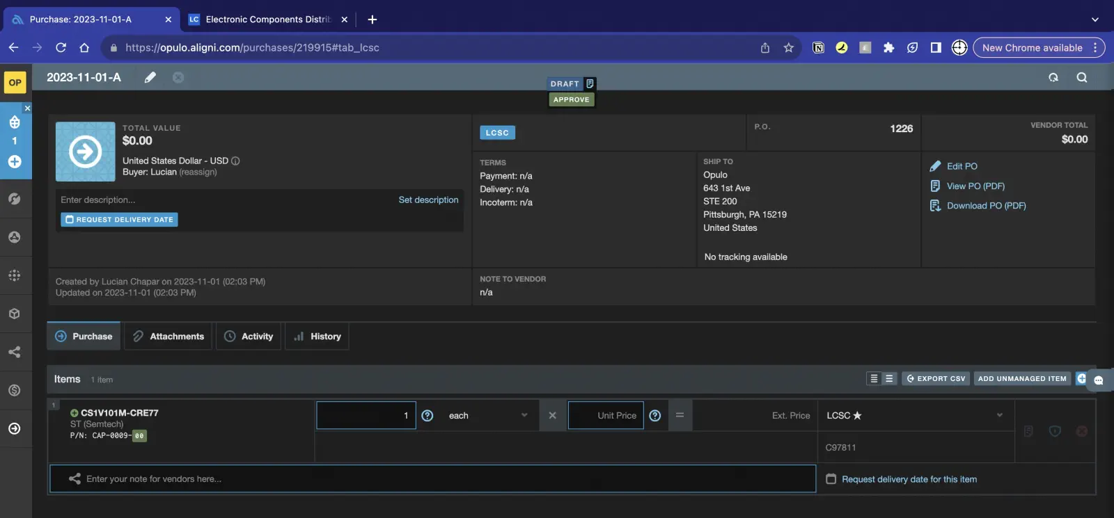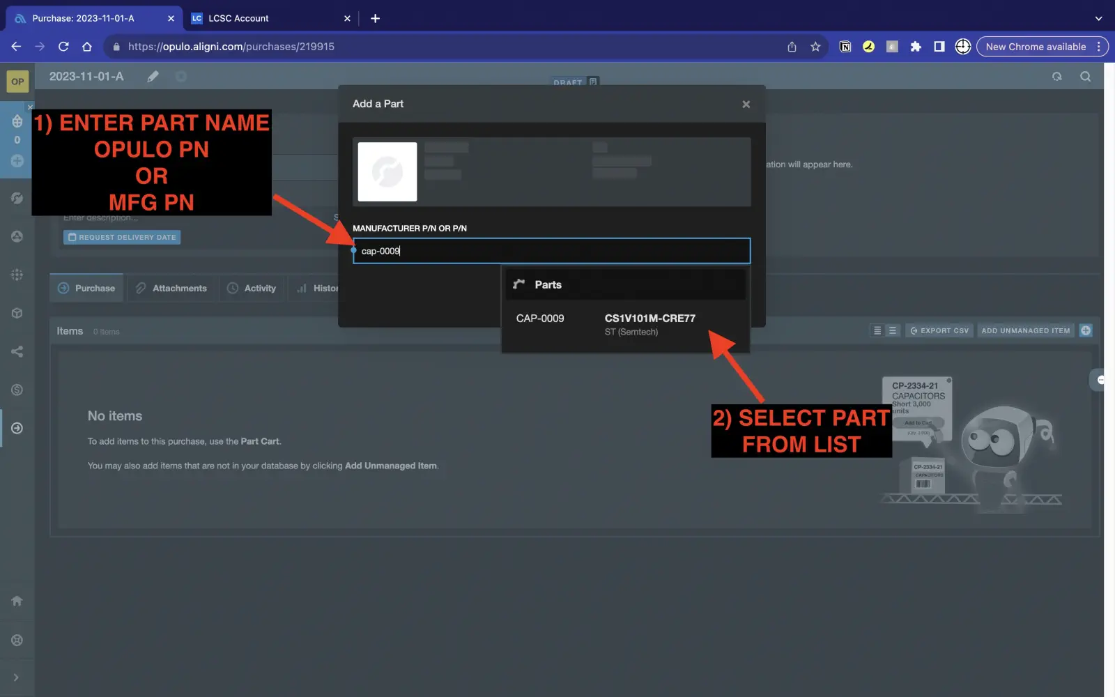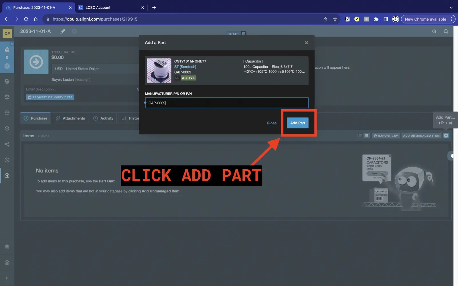 order QTYfrom LCSC to the part'spurchase QTYfield in Aligni - Copy/paste the chosen