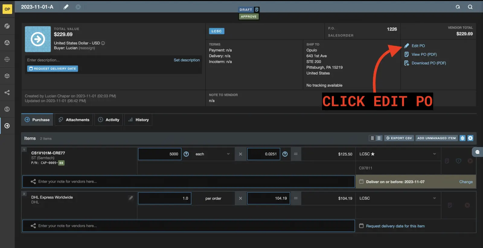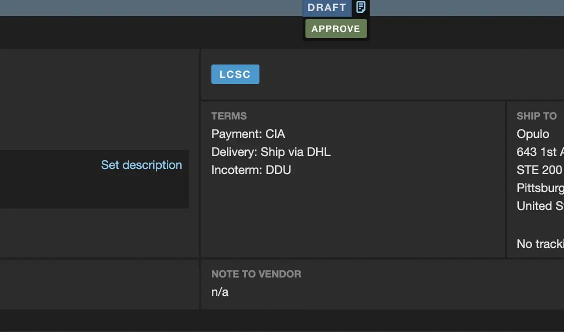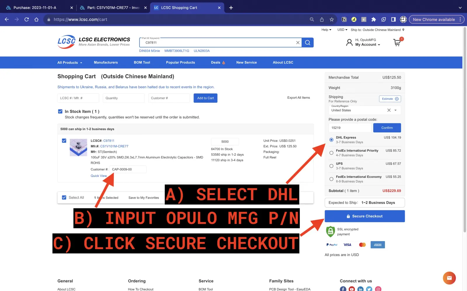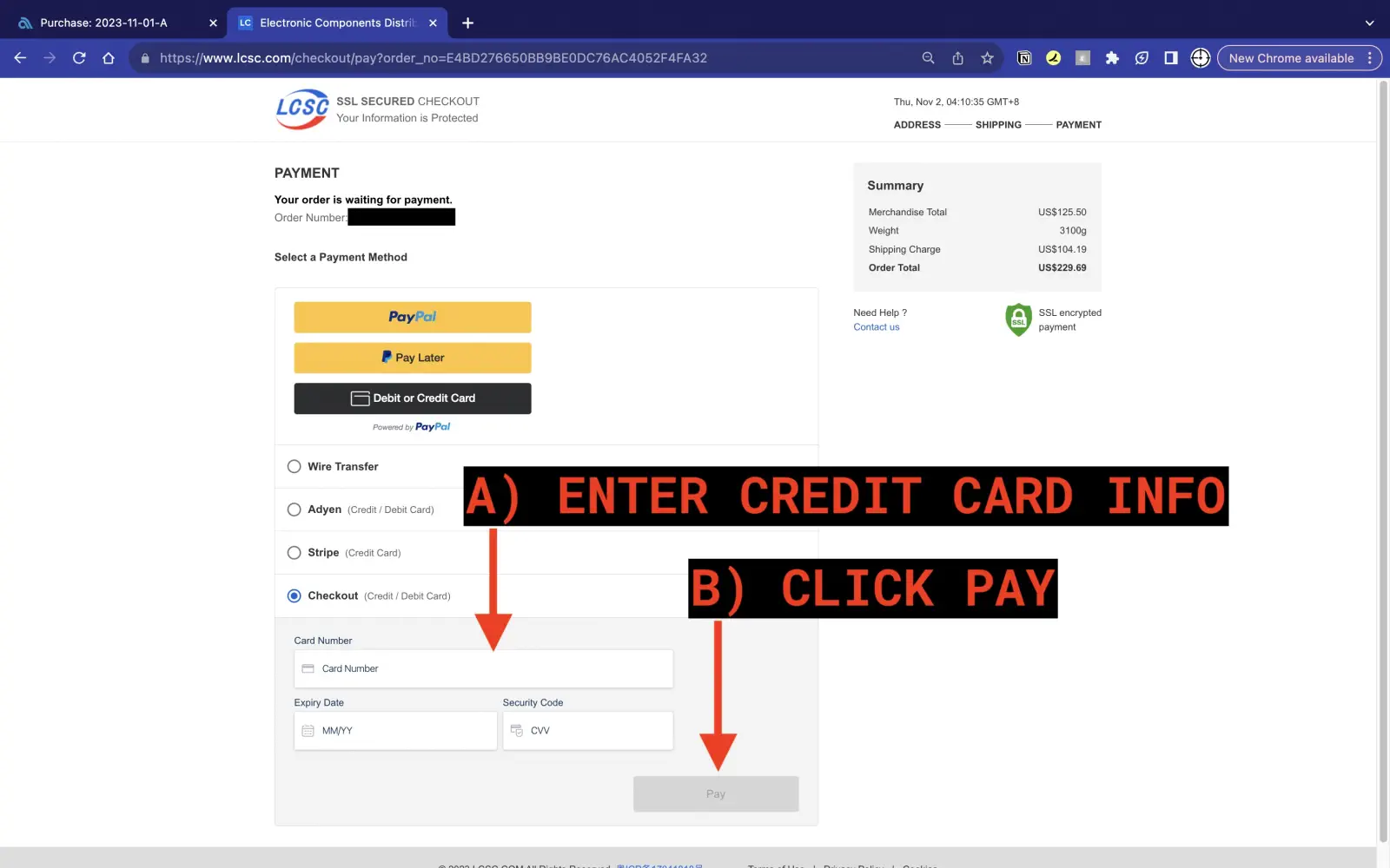 Do not continue with the checkout process on LCSC until the purchase order has been approved