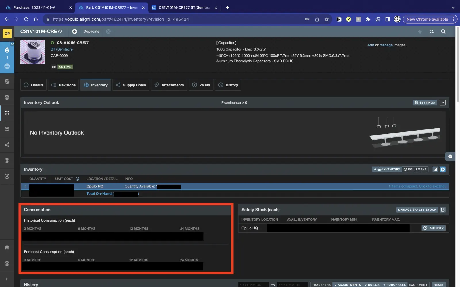 Historical Consumption Ratesand compare it to the volume pricing shown in LCSC while considering the following:- What is our current inventory levels compared to the