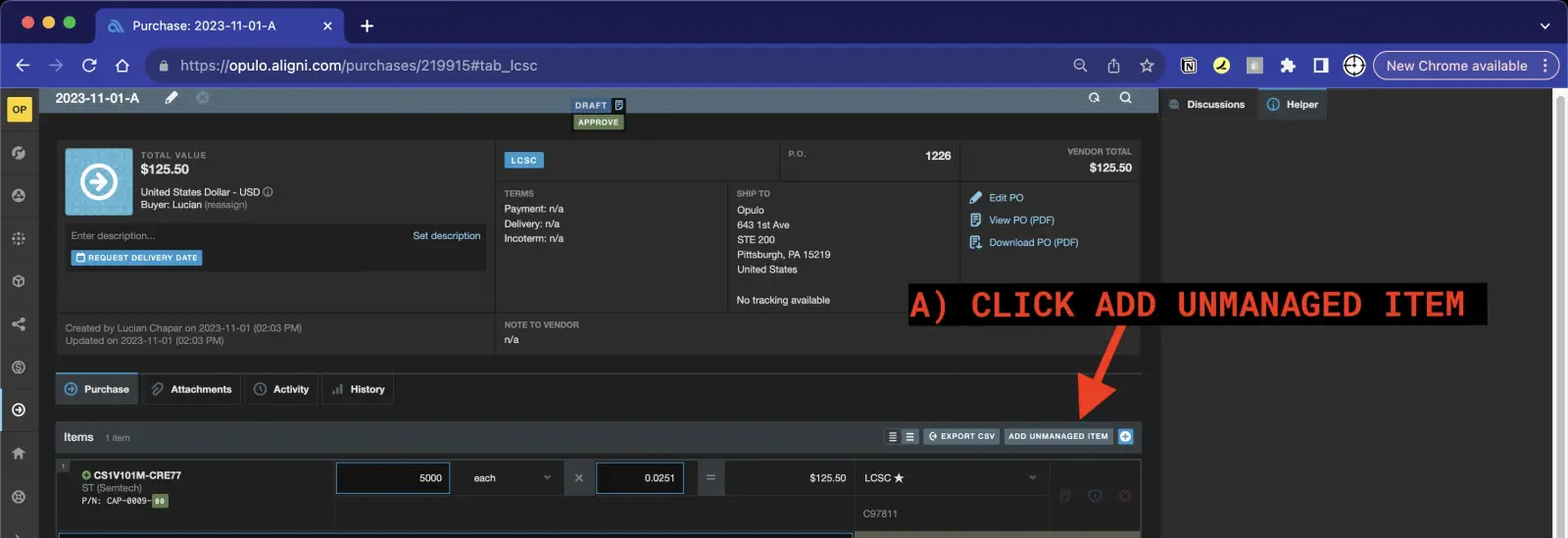 - Within the purchase order page, click the ➕ icon to add a new line item