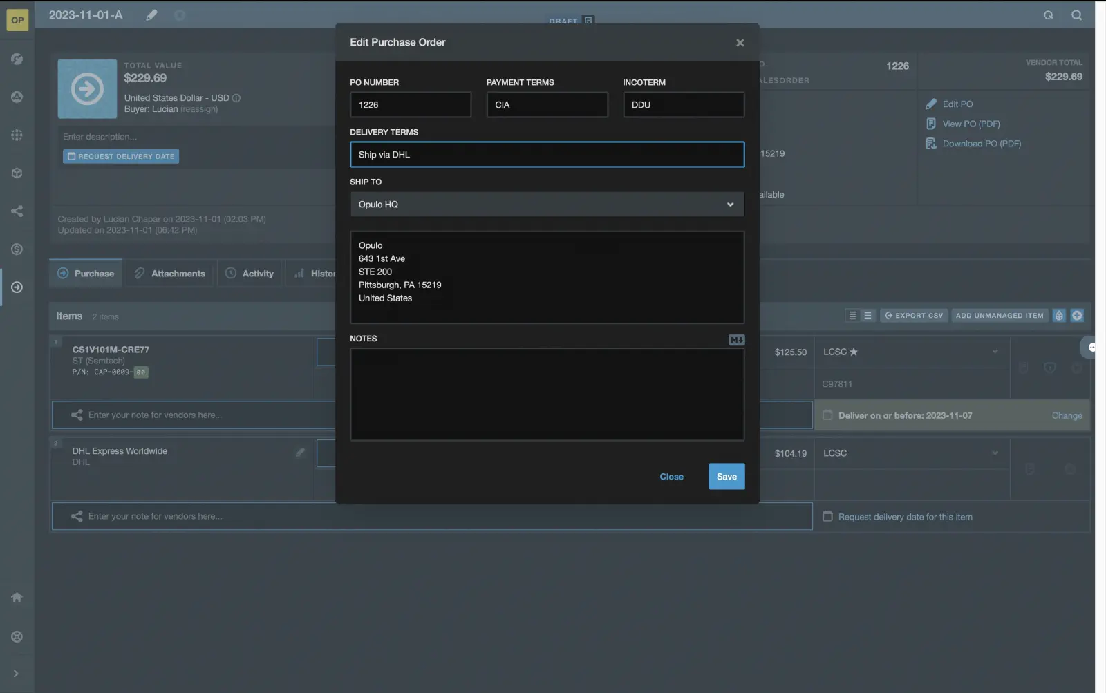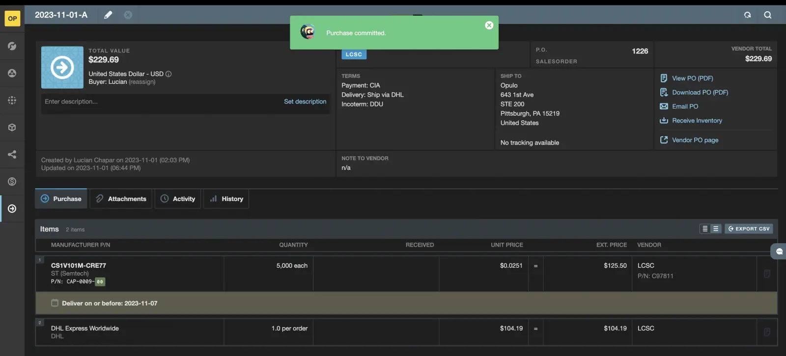 Opulo MFG P/Ninto theCustomer #text-field - Click