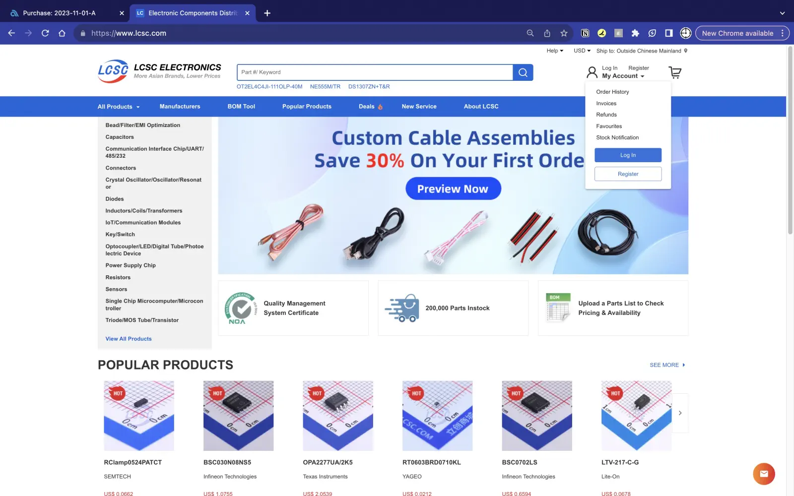 Vendor P/Ninto the LCSC search bar found at the top of the website