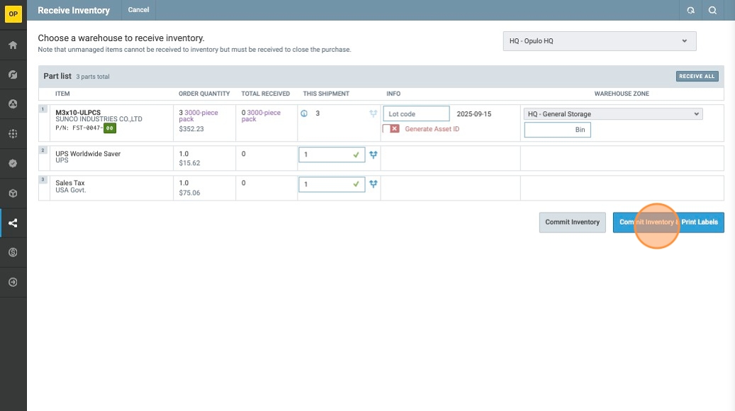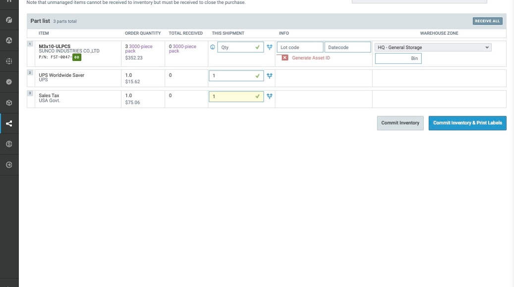 - You can receive items against the same PO multiple times until the line item is fully received.