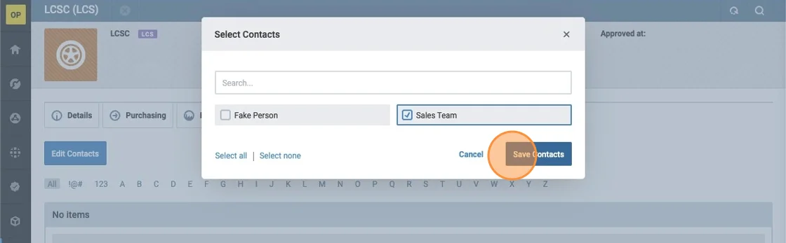 - Contacts are individuals or teams listed in Aligni that are associated with vendors and/or manufactuers