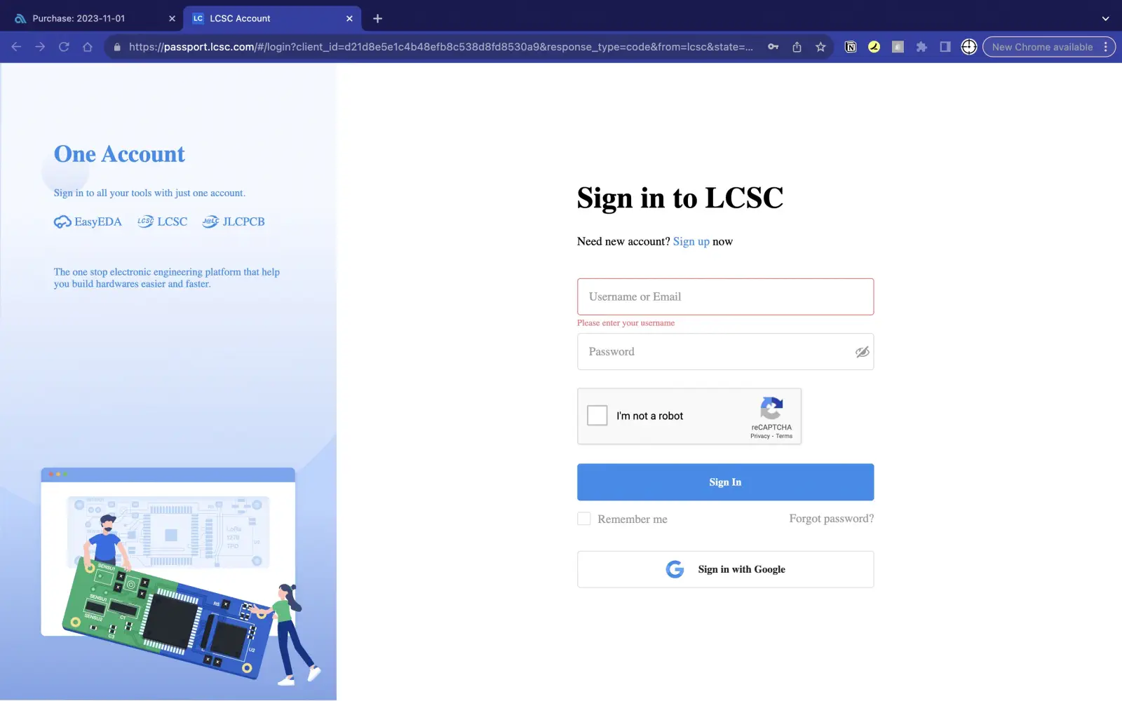 Do not continue with the checkout process on LCSC until the purchase order has been approved