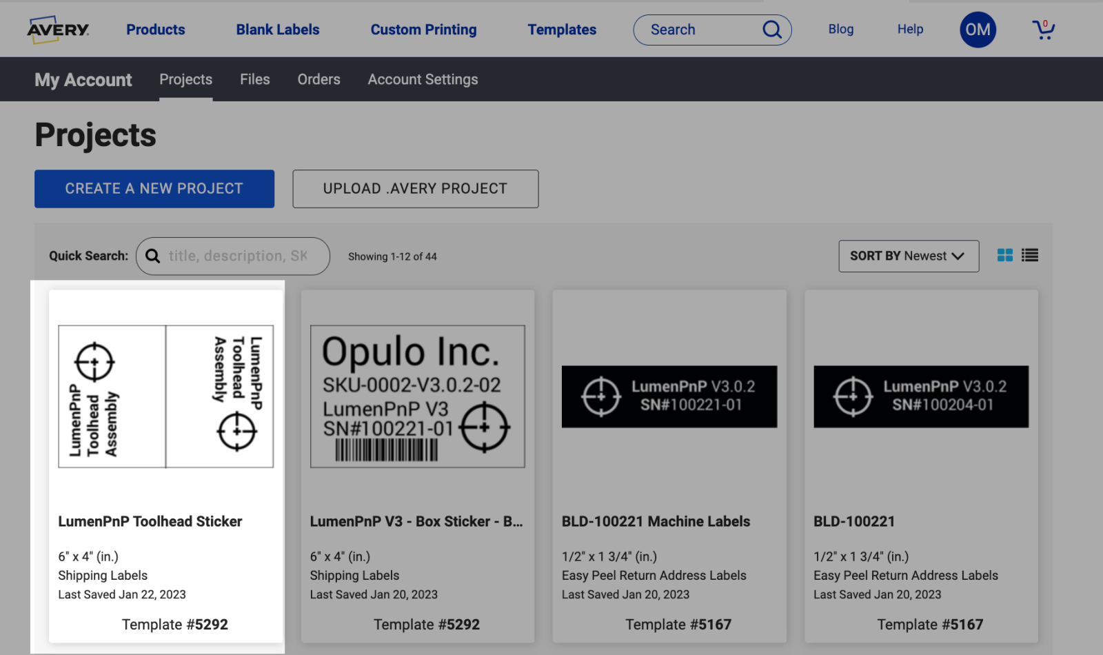 Print LumenPnP Toolhead Assembly bag labels by accessing our account on Avery Print