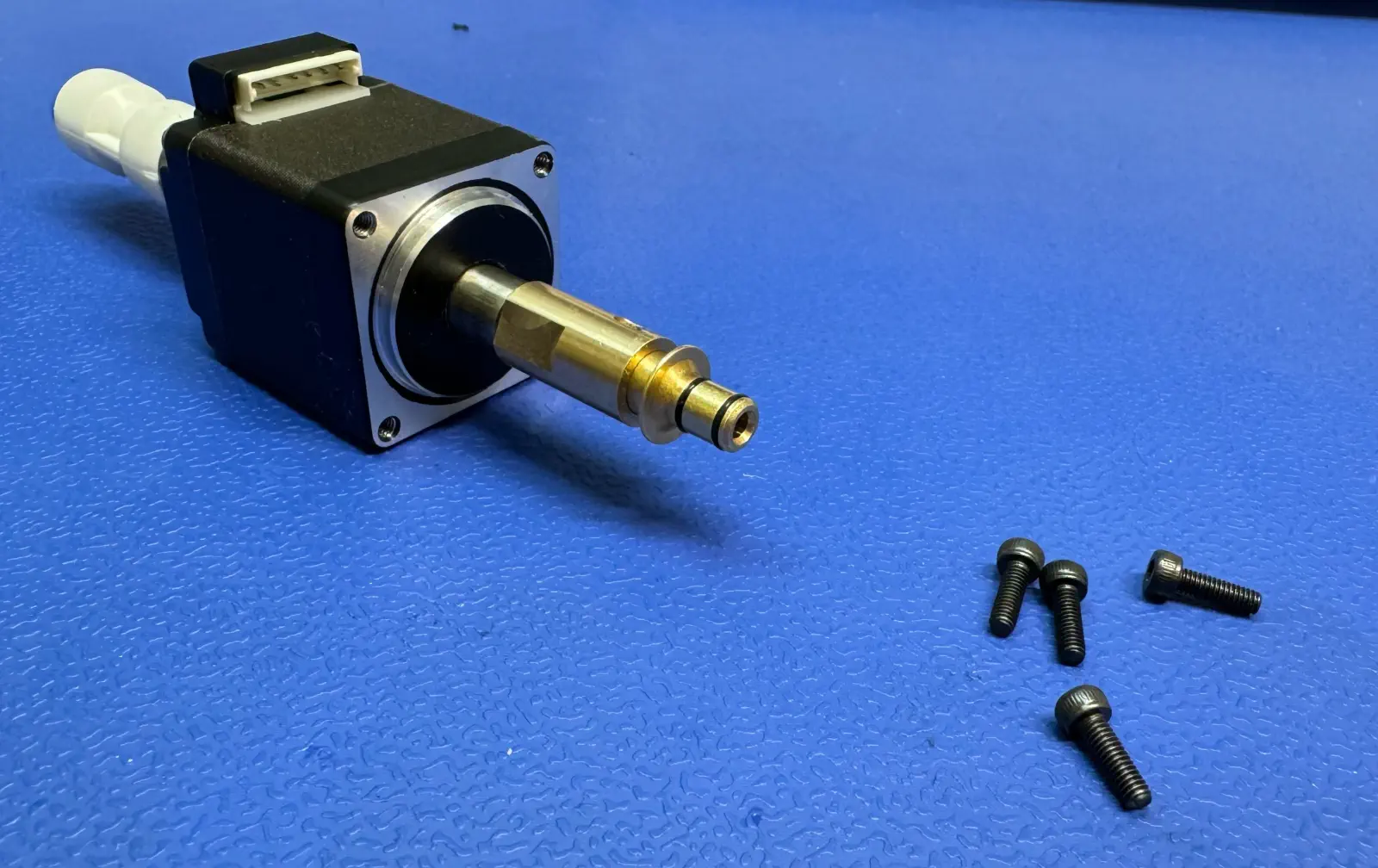 NEMA11-hollow-shaft-stepper(w/attachednozzle-holder,rotary-pneumatic-adapter, and bolts)l-motor-harnesssilicone-grease-packet- Bagged